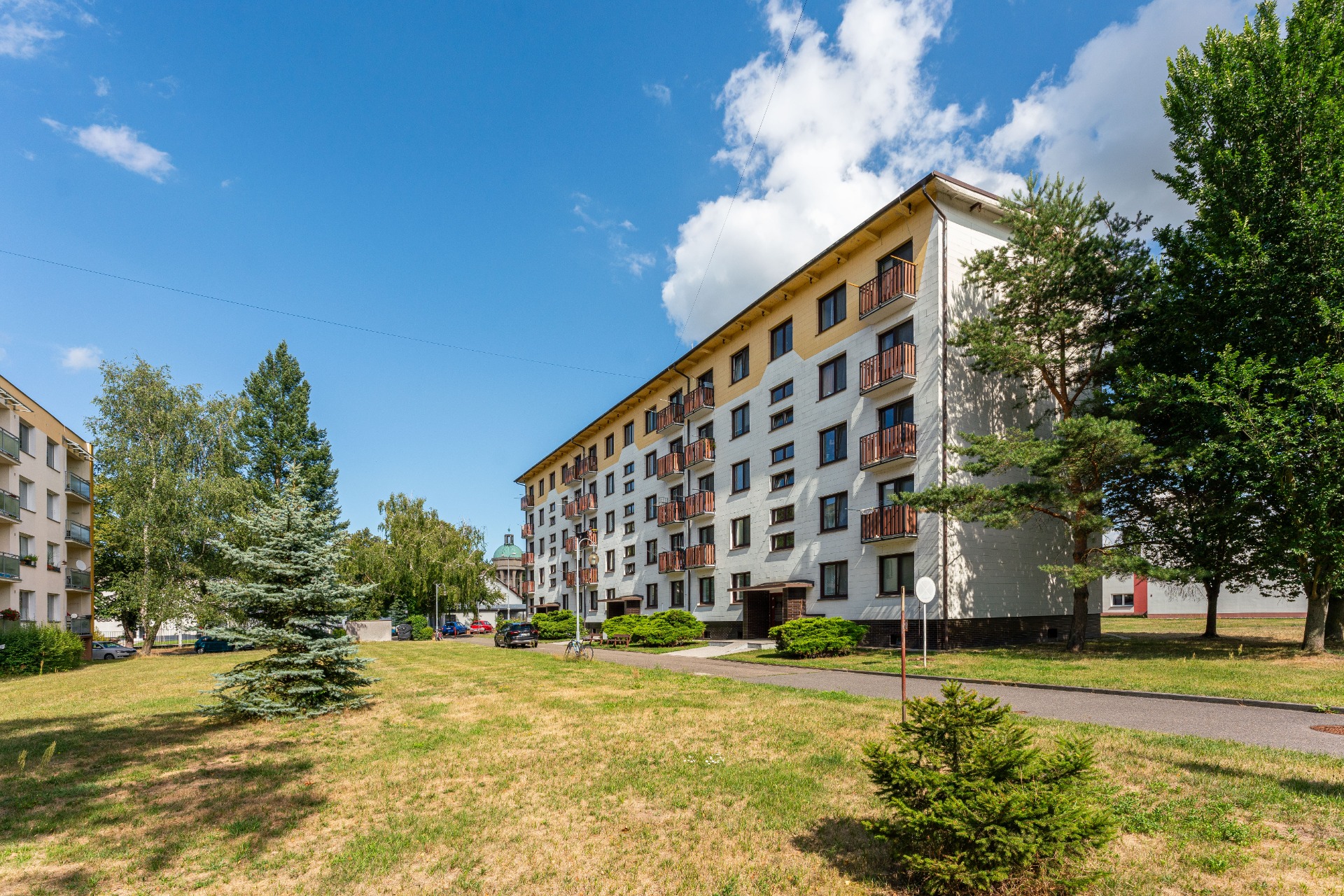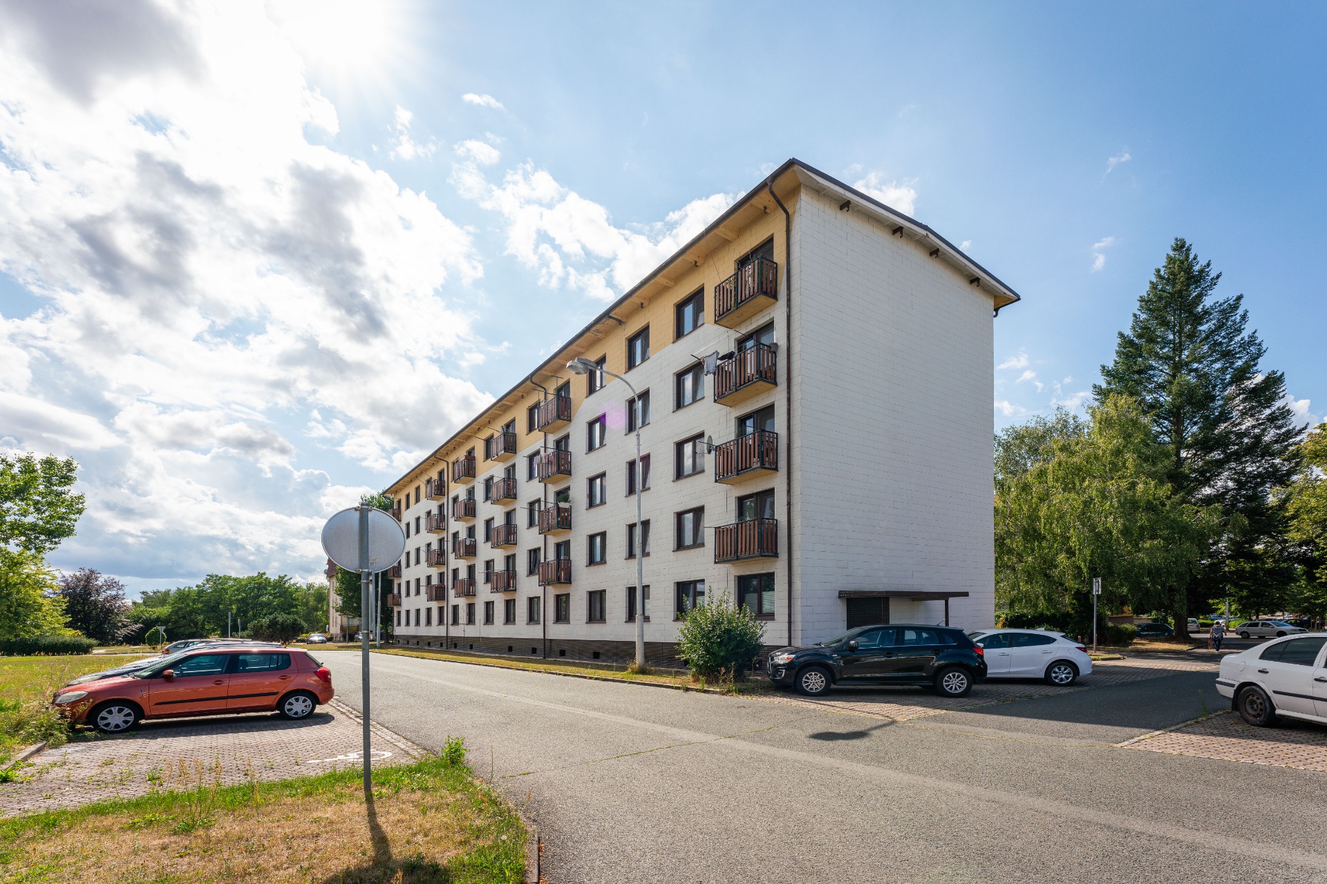 Byt o velikosti 34 m2 se nachází ve 4 podlaží pětipatrového domu. Ve vstupní chodbě je velká šatní skříň, koupelna se sprchovým koutem a WC. Samostatná, plně vybavená kuchyň, kde se nachází i pračka s mikrovlnnou troubou. Obývací pokoj s balkonem je vybaven vyvýšenou postelí, díky které získáte krásný prostor pro gauč a stolek.